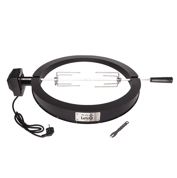 LetzQ spit is voorzien van een RVS draai spit, verstelbare vorken en een 4 watt elektrische motor. De motor is krachtig genoeg om meerdere kippetjes of steaks tegelijktijd te grillen.